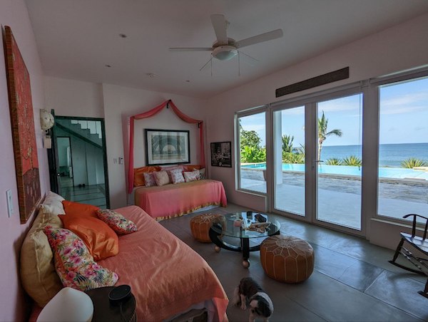 A second social area and 4 bedrooms are located on the 2nd level. Two of the bedrooms have french doors with views to the ocean and direct access to the pool.